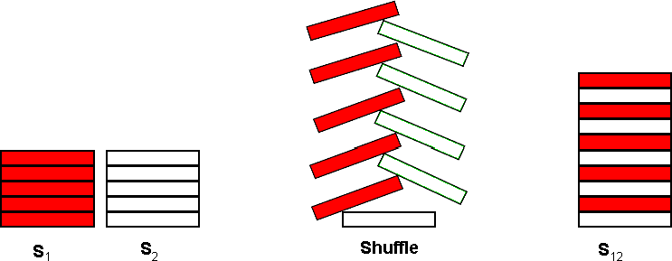 洗牌就是将这两叠牌交错堆叠在一起,形成一个拥有 $2C$张牌的新牌堆$S_{12}$。